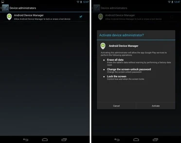 Dari cuplikan layar tersebut terlihat bahwa pengguna Android akan bisa menghapus semua data melalui Device Manager. Selain itu juga ditemukan opsi untuk mengganti password kunci layar dan mengunci handset dari jarak jauh, fitur yang tidak diungkapkan Google ketika mengumumkan ketersediaan Android Device Manager tersebut.Fungsi Android Device Manager mirip dengan BlackBerry Protect, layanan Apple Find my iPhone, atau my Xperia pada handset Sony.Selain Android Device Manager, versi terbaru dari Play Services juga menambahkan fitur 'Compass Mode'. Dengan fitur ini maka pengguna bisa menjadikan perangkatnya seperti layaknya kompas.